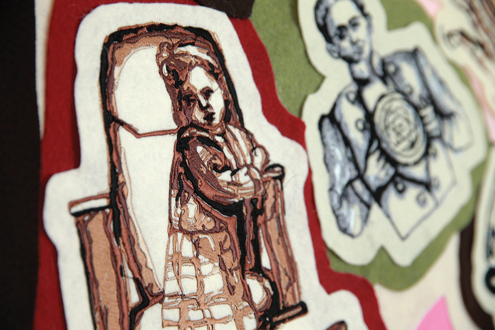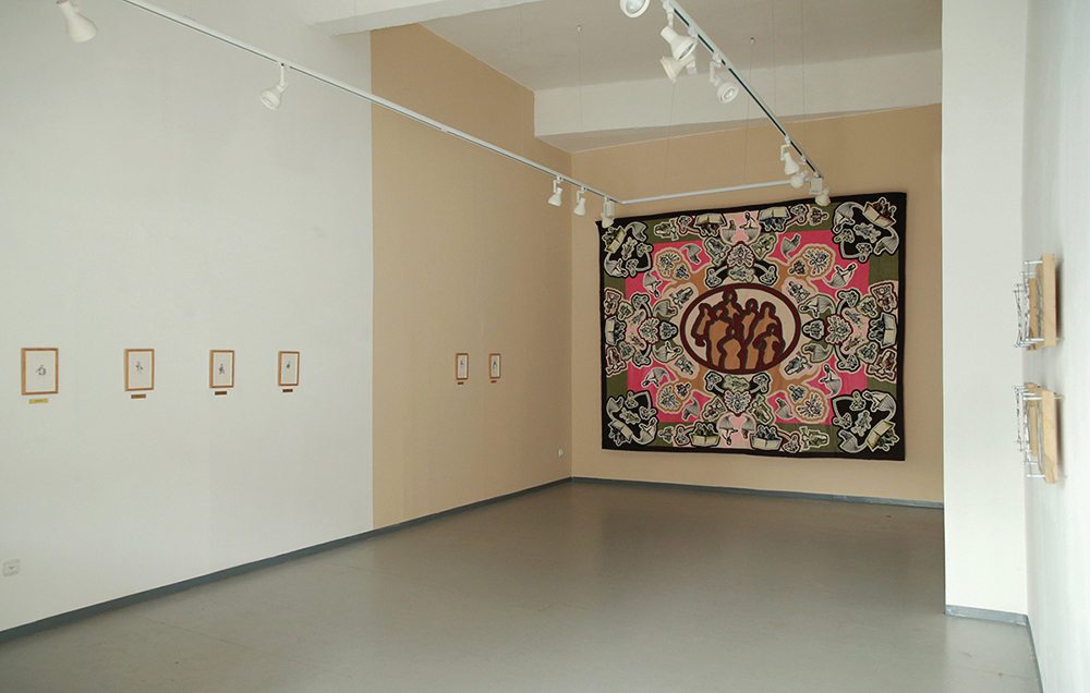 המבקר בתערוכתה של תמר לב-און מובל לתוך חלל המזכיר הן סביבה ביתית מוכרת והן מעין טירה אגדית - תמהיל של אמת ובדיה המחולל אי ודאות. כמו בעת קריאה במקורות היסטוריים סותרים, גוף העבודות משלב בין הארכיוני והמומצא, המתועד והמדומיין, ומצביע על הגבולות הדקים ביניהם: תצלומים משפחתיים מפורקים ומורכבים מחדש מבעד לסבכת ברזל, רישומים חסרים של דמויות ושטיח טלאים רקום המבוסס על התצלומים והרישומים גם יחד. במרכז השטיח תמונה משפחתית מרוקנת אשר מסביבה חגים השחקנים שנתלשו מתוכה, גיבורי סיפור אגדה עם חפציהם מרחפים במנותק ובמשותף, פורשים כנפיים, חיים ומתים, צפנים חזותיים של אודיסאות חבויות. במיתולוגיה החדשה הנרקמת על השטיח, המאפיינים הפנטסטיים של הגיבורים נגזרים מתולדותיהם של בני המשפחה. עיצוב השטיח מתחקה אחר דגמים קלאסיים, גיאומטריים או כאלה השואבים מן הפאונה והפלורה, אלא שהם מורכבים מדמויות, מסיפוריהן ומאובייקטים הקשורים ומזהים אותן. בו בזמן העבודה מהדהדת את הגובלנים, שטיחי קיר שנרקמו באירופה בידי נשים והתבססו על ציורים שתיארו דמויות אריסטוקרטיות בסצנות של קרבות ואהבות אגדיים, ובתקופות מאוחרות יותר בפעילויות של ציד, בילוי ושעשוע בנופים אידיליים. הגובלנים נוצרו בבתי מלאכה עבור האצולה והמלוכה, ואט-אט "בויתו" והפכו לפרקטיקה נשית עממית נפוצה. את המערך החזותי הנרטיבי מפעילה בעמלנות דמות ראשית נעלמה, דמותה הפיקטיבית של "הרוקמת והידעונית". זו הגבירה הרוקמת ואורגת את סיפורה שלה ואת סיפורם של אחרים. מתוך דורות של רוקמות ואורגות היא פורשת את מניפת ההיסטוריות שלה בשפה ביקורתית וחתרנית המשלבת הפרדות דיגיטליות, רקמה תעשייתית ופעולה ידנית ועוטה על עצמה סממנים קיטשיים ונוסטלגיים. התערוכה מנכיחה את הגבולות הנזילים בין האמנות לקראפט, בין גבוה לנמוך ובין העכשווי למסורתי מתוך עמדה מגדרית מוצהרת. היא מעלה את רוחות המתים באוב, ומצביעה על יכולתו של מעשה האמנות לכתוב ולתעד את המציאות ובו בזמן לערער עליה ועל אפשרויות הייצוג שלה. הדמויות יוצאות מן השטיח אל שני הקירות הסמוכים לו כשהן ממלאות תפקידים מנוגדים: מן העבר האחד מתפרקת המשפחה לאינדיבידואלים שלה. ללא הקונטקסט הצילומי, הם מישירים מבט יחידני לצופה ובה בעת מרמזים על החלקים החסרים. מן העבר השני תצלומי בני המשפחה מתערבבים זה בזה בשילובים שונים – לתמונת המשפחה מסתננים אורחים ממשפחות אחרות, הבודקים מה היה קורה אילו הסיטואציה המשפחתית, המפגשים הזוגיים ומהלכי החיים היו שונים.